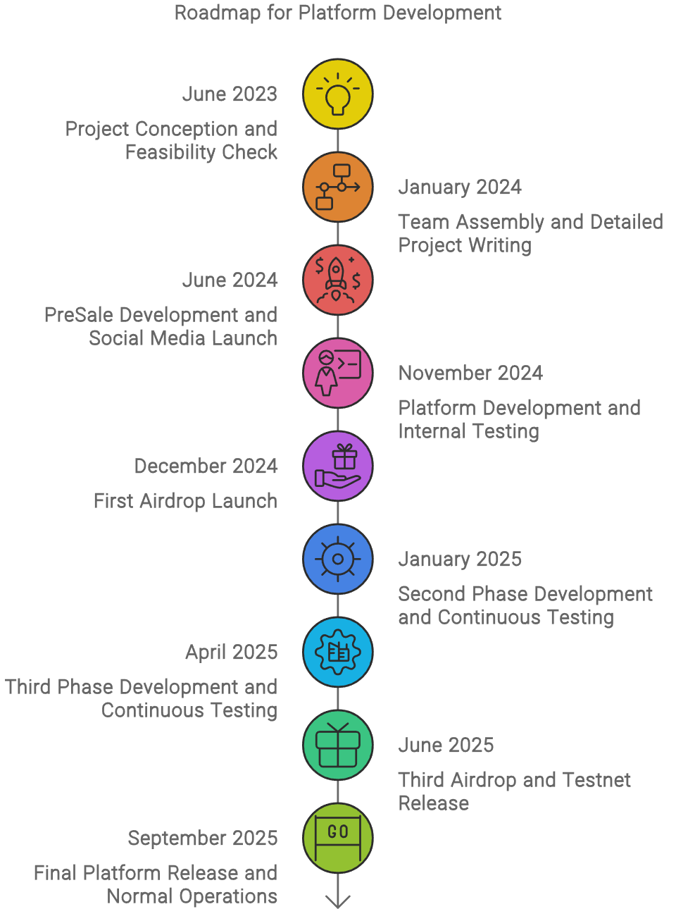 Launch of the second airdrop and testnet version.